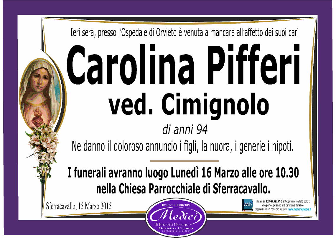 Pensiero di Ricordo per CAROLINA PIFFERI